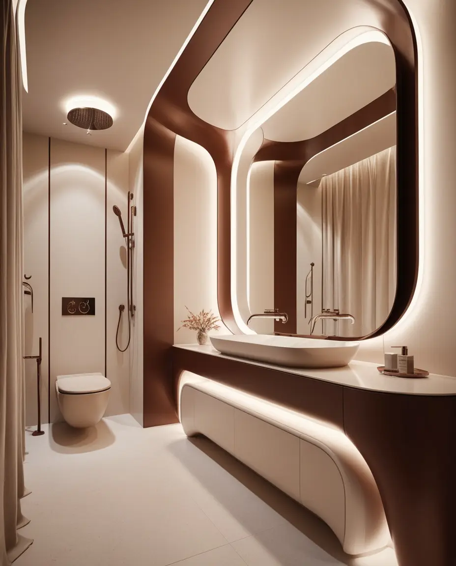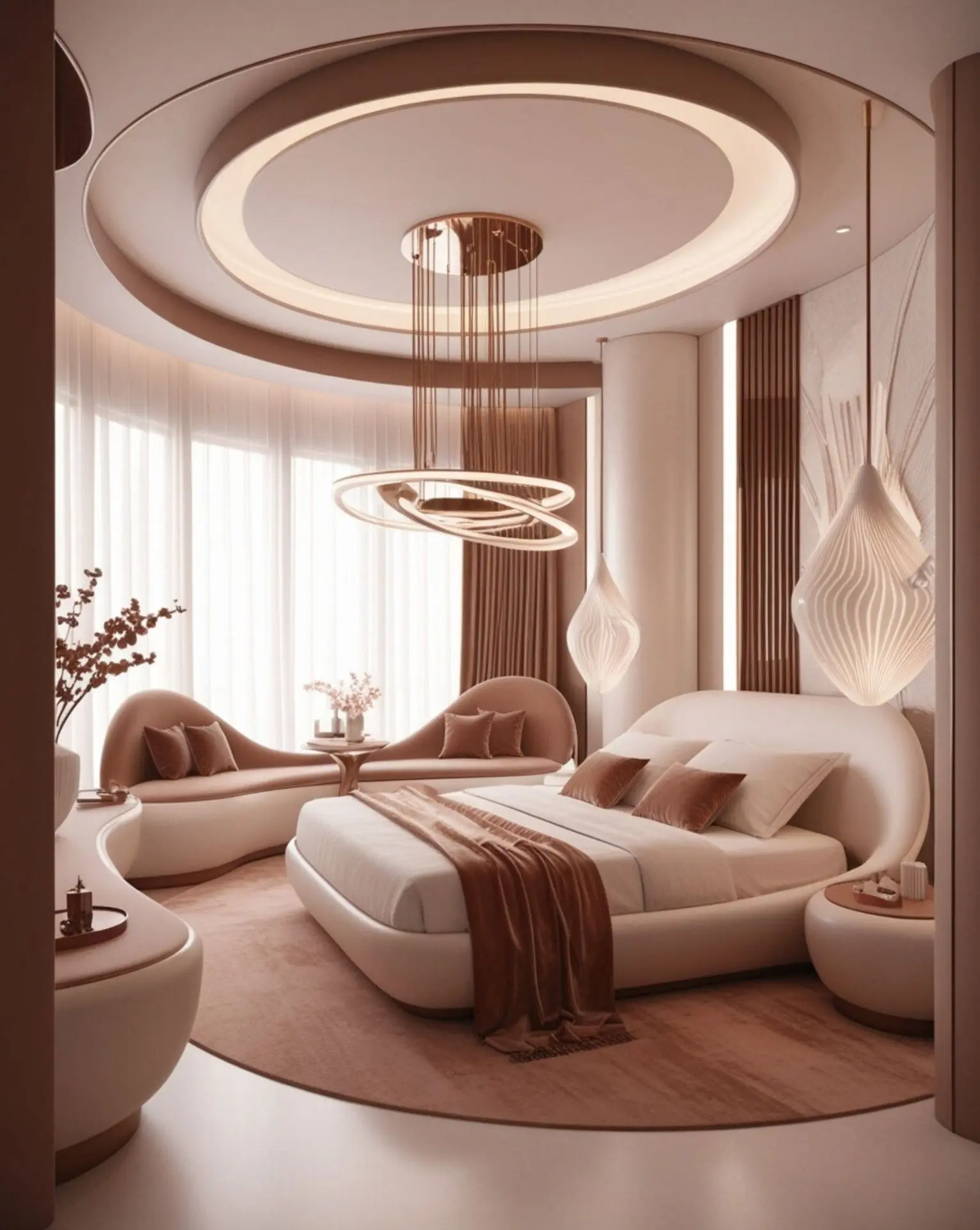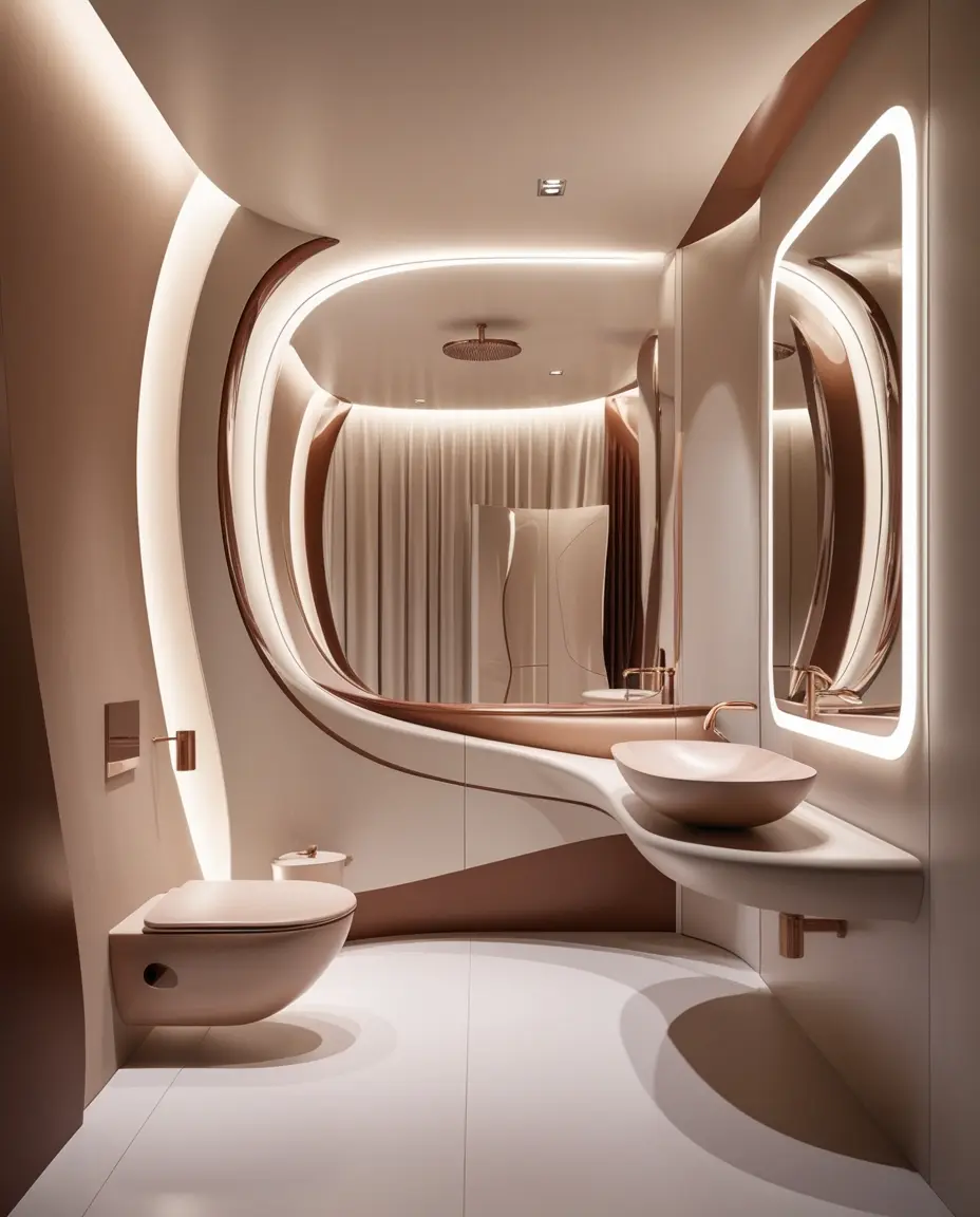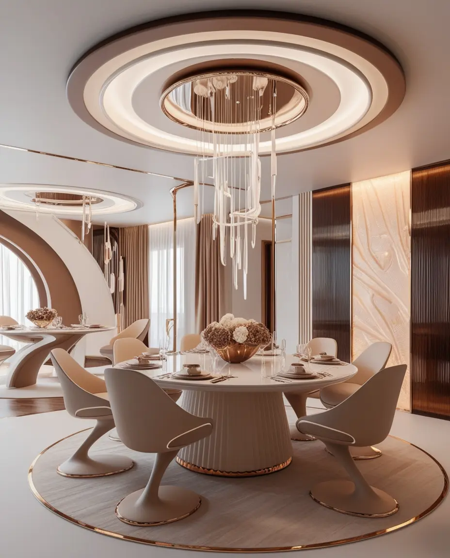 تميز التصميم الداخلي للشقة بالاعتماد على خطوط تصميم منحنية، ألوان محايدة مع لمسات معدنية، وإضاءة مبتكرة تبرز الطابع المستقبلي. تم استخدام تقنيات ذكية لتوزيع الإضاءة بما يخلق إحساسًا بالاتساع، مع انتقاء مواد عالية الجودة ومستدامة مثل الزجاج المعاد تدويره والخشب الصديق للبيئة. كما أضفنا عناصر ذكية مثل الأثاث متعدد الوظائف لتعزيز مرونة المساحة دون التأثير على المظهر العام.