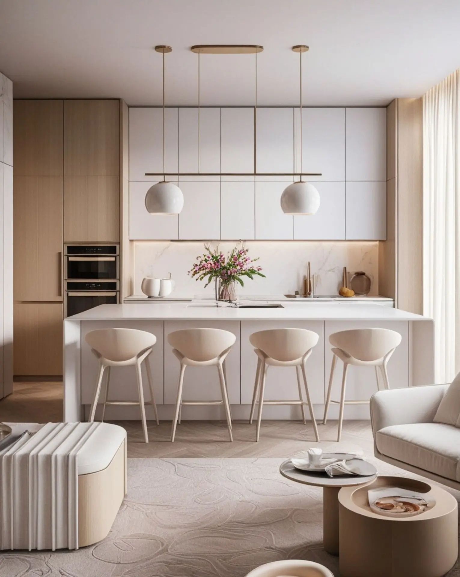 أخذنا في الاعتبار أهمية التوازن بين الجمالية والوظيفة من خلال تصميم الأثاث بشكل عملي ومريح مع الحفاظ على طابعه العصري. استخدمنا حلول تخزين مبتكرة داخل الأثاث لضمان استغلال كل زاوية من المساحة دون التضحية بالمظهر الأنيق، مما خلق بيئة معيشية مريحة ومنظمة.