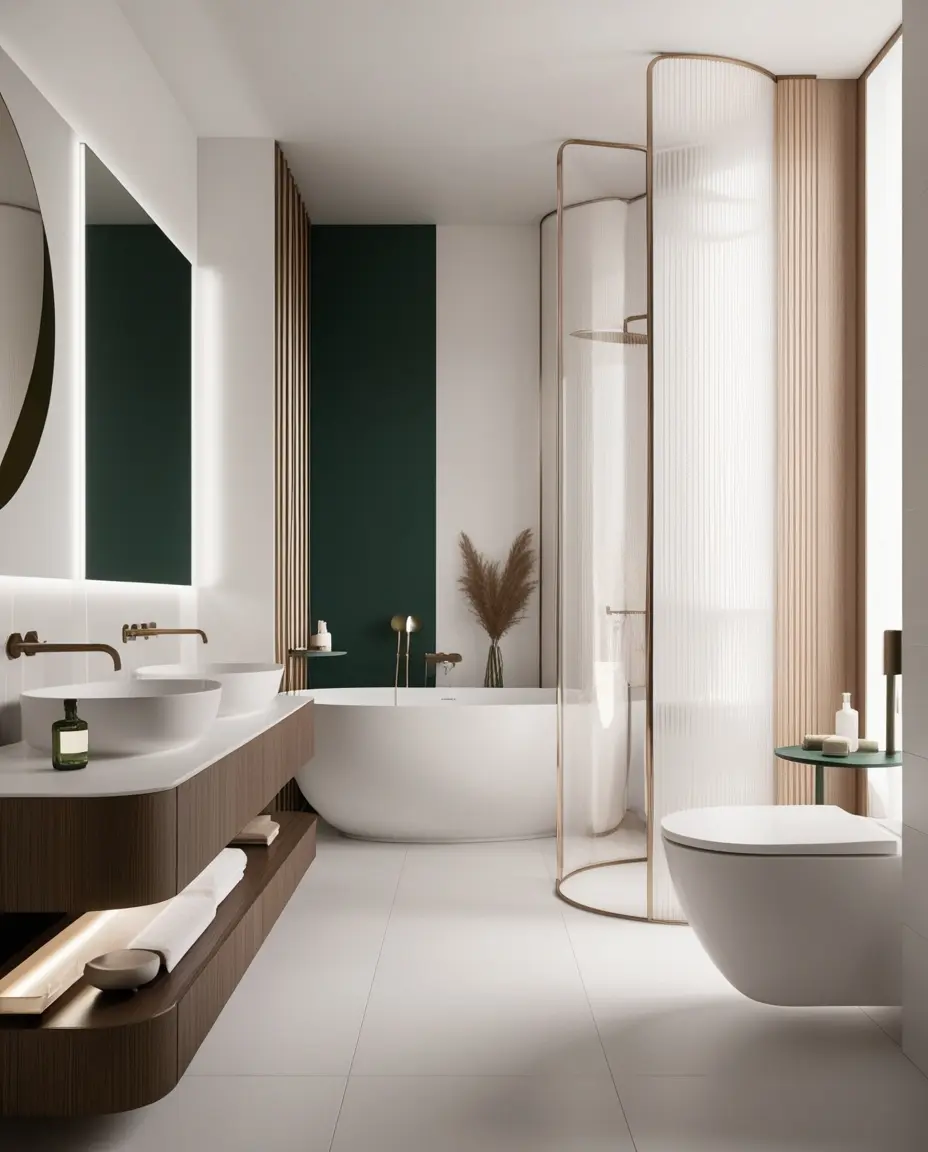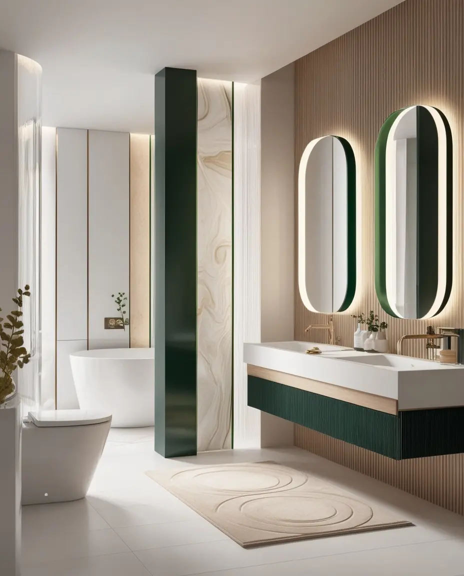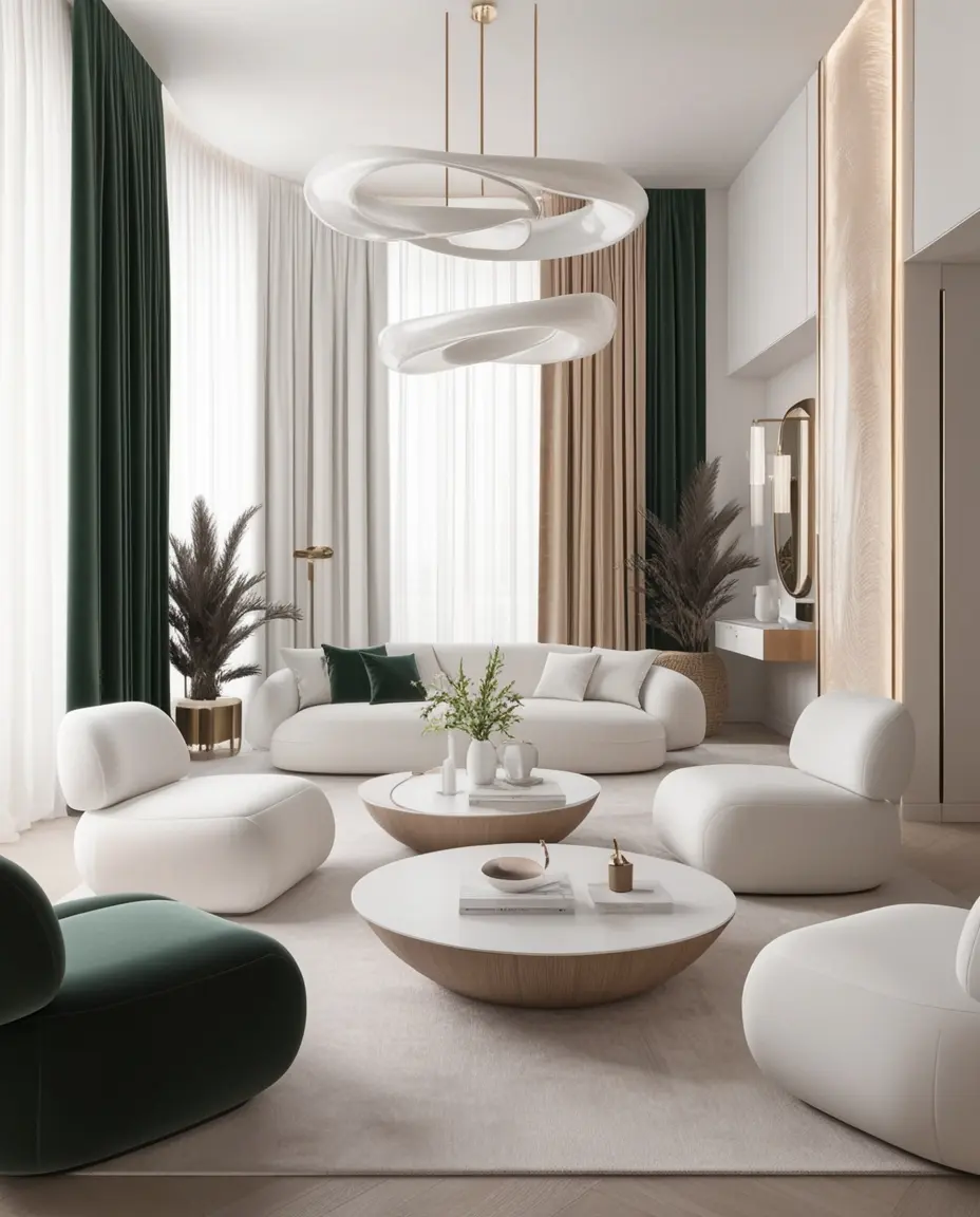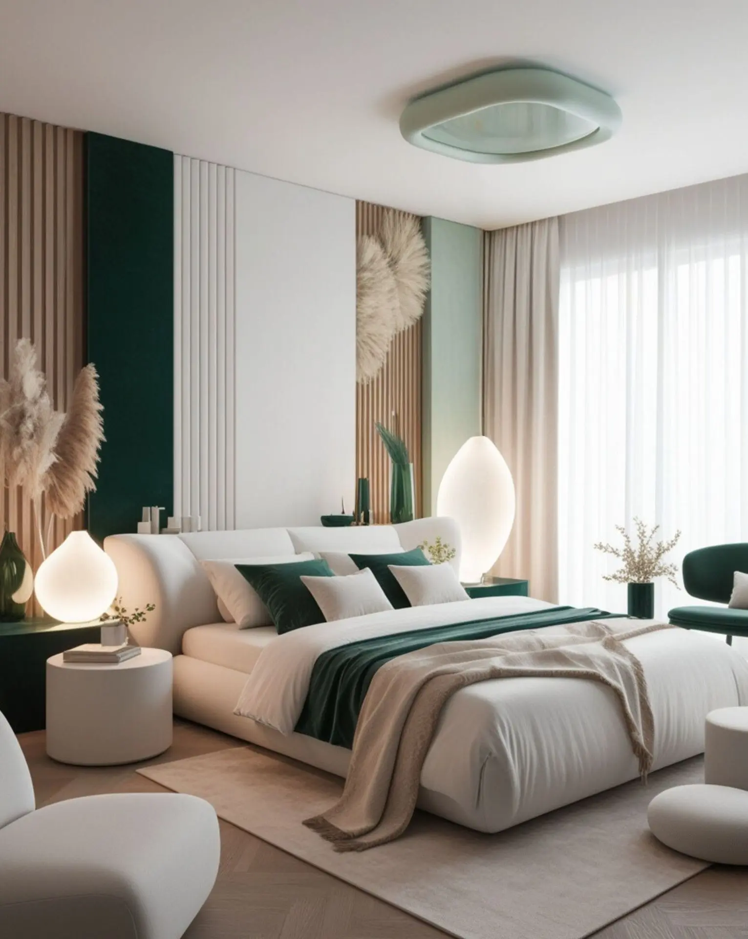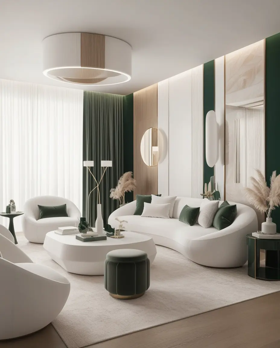 تميز التصميم بالاهتمام بأدق التفاصيل، بدءًا من اختيار مواد التشطيب ذات الجودة العالية مثل الرخام الطبيعي والخشب الفاخر، وحتى انتقاء لوحة ألوان عصرية تضم درجات محايدة مع لمسات دافئة مع اللون الأخضر الزمردي. تم تصميم الأثاث خصيصًا ليتناسب مع المساحات الداخلية للشقة ويعكس الطابع العصري. كما أضفنا عناصر زخرفية بسيطة لتعزيز الطابع الفريد مع الحفاظ على الأناقة والبساطة.
