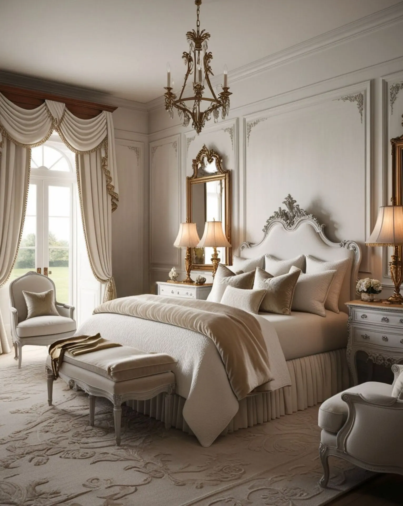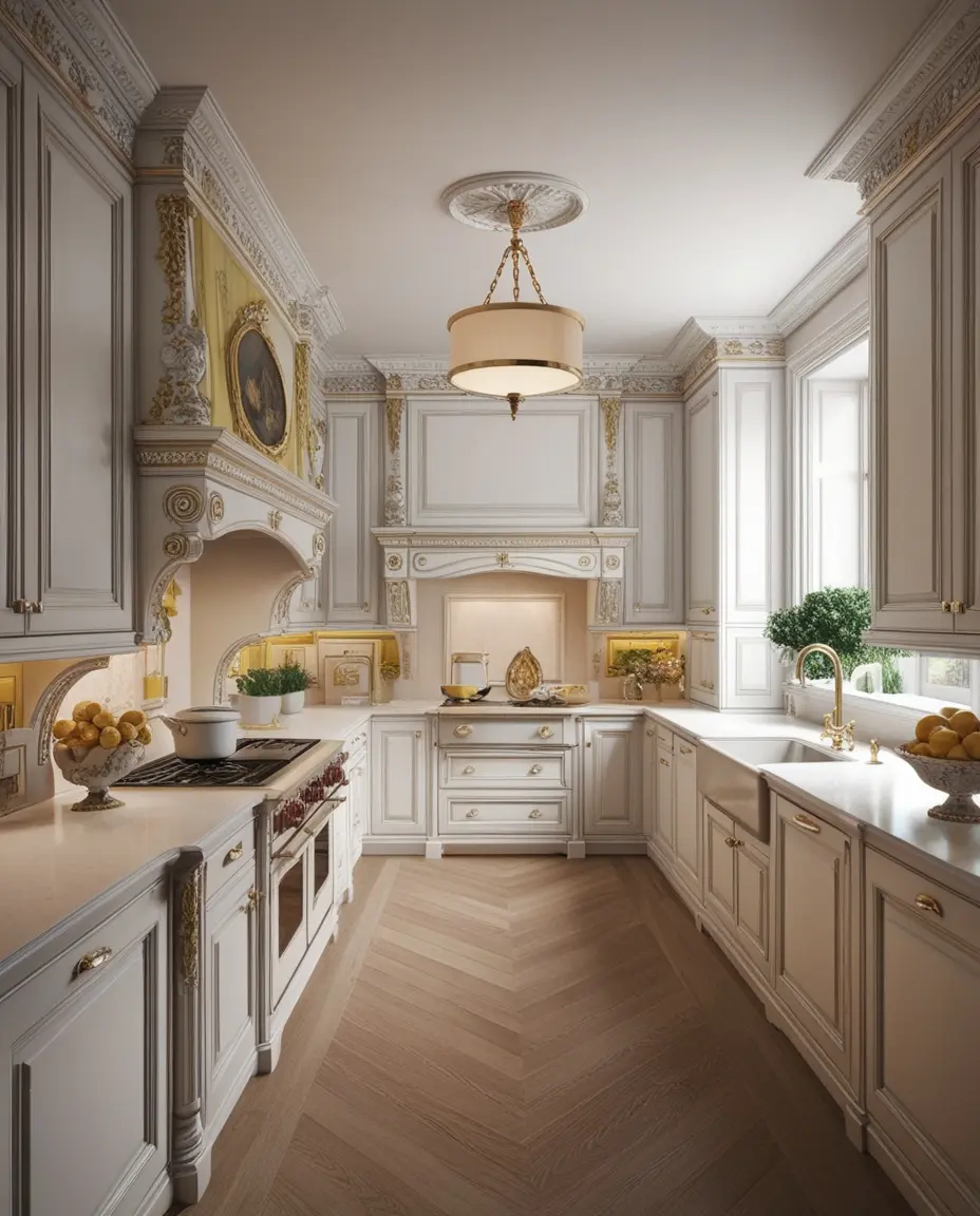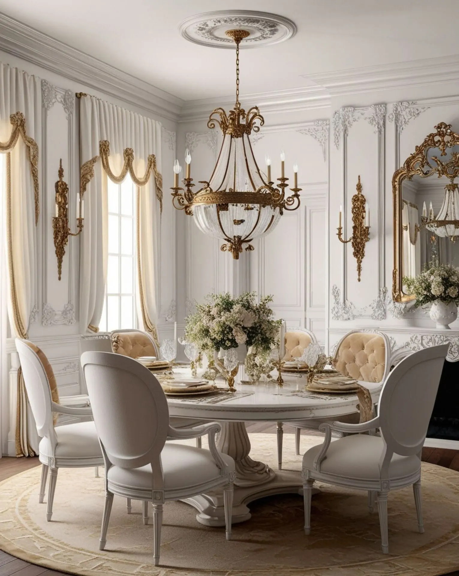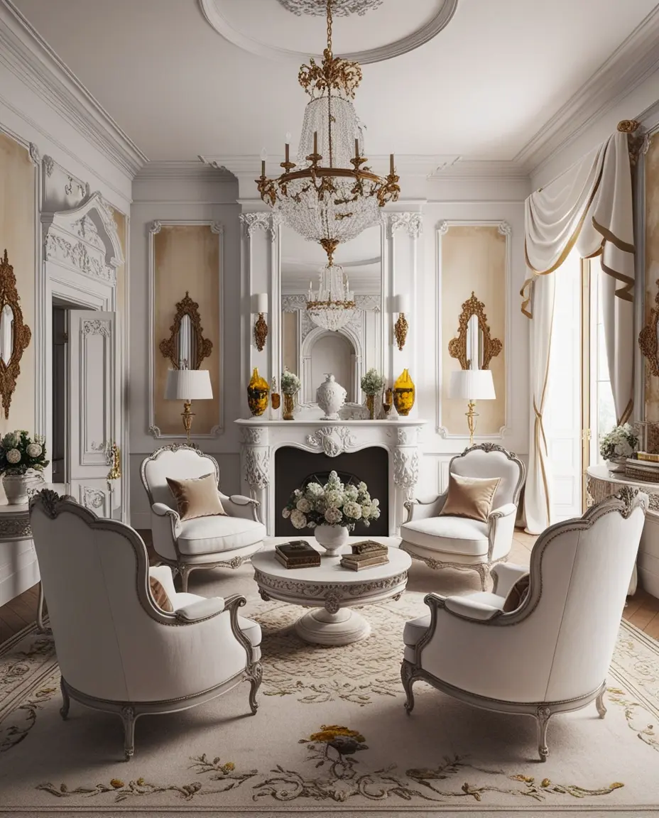 - تفاصيل زخرفية دقيقة: أضفنا عناصر مثل الطاولات الخشبية ذات الأرجل المزخرفة، والثريات الفاخرة التي تشبه تلك الموجودة في القصور الملكية.